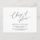This is the modern minimalist clean script, design themed, in Black font, Wedding party invitation Rescheduled postcard (change of plans). It is the perfect and elegant way to make the reschedule announcement to your friends and family.
