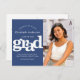 Make sure all your friends and relatives will still be able to celebrate your graduate’s milestone event, regardless of current global unforeseen circumstances. Send out this stunning, simple, modern, personalised photo “Change of Plans” postcard for an event to remember. Bold, graphic, white typography overlays a navy blue background. On the right hand side, add a photo of your choice. Personalise the custom text with your graduate’s name, class year and date information. Your custom message, a navy blue graduation cap icon and your return address adorn the back. Matching invites, thank you cards, cap toppers, napkins, plates and other graduation goodies are also available in this trendy and stylish collection. Make sure their special celebration will still be as festive as originally planned!