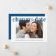 A fresh and cheerful change the date wedding announcement. "change the date" is written across the top of your favourite engagement photo in bold, clean and modern light classic blue typography, and underneath you can personalise your names and postponement announcement. On the reverse side, you can personalise your message in more detail and add your new wedding date and venue, all in a coordinating white typography against a classic blue background.