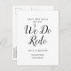 This modern script black and white save our date, we do redo card features an elegant script above your details set in chic typography. The reverse has additional details, including your website, with your return address and space for your recipient's address. Designed by Thisisnotme©