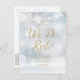 Change the date We do redo wedding update new plan card features an elegant gold script above your details set in modern typography on a snowflakes winter frost background. The reverse has additional details, including your wedding website, with your return address and space for your recipient's address. Designed by Thisisnotme©