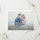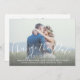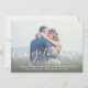 Hand lettered white script overlay design photo wedding CHANGE the date announcement card - horizontal. Send out your change the date cards as newly engaged couple to your friends and family using this beautifully, simple save the date postcard with a white handwriting script text overlay design. Design by Elke Clarke© . Replace the sample photo with your own. Add your personal information on the front and on the back.