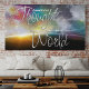 Transform your space with this Change Your Thoughts, Change Your World poster, featuring a vibrant cosmic backdrop where Earth appears to rise like a new dawn. Radiant sunrays stream over the planet, symbolising limitless possibilities and the power of positive thinking. This stunning 29.76" x 23" piece is printed with a silver gloss UV finish for a striking effect. Also available in smaller sizes with customisable matte, frame, and finish options.