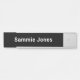 Easily personalise this changeable door name plate with your name or other custom text. You can customise the black background colour. Available in other metal colours in two sizes – standard 2 inch x 8 inch or long 2 inch x 10 inch – and in two styles – as a door name plate or a desk name plate. No minimum order quantity and no setup fee.