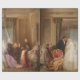 This design features a painting by the English painter, of the Victorian era, George Elgar Hicks (1824–1914). It shows a wife moving into her new husbands grand house after an elegant wedding ceremony. The bride is wearing a long white dress in a traditional style. The bridegroom is wearing a traditional morning suit and tie, and he has his hand placed on a stylish red chair that looks like a throne, gesturing for his wife to be seated. There are many family members celebrating with the husband and wife, including younger children and elder relatives. Everyone is wearing their finest clothes for this special occasion. It is a joyous moment for the happy couple, one that they will cherish for the rest of their lives. The original artwork was painted in 1862.