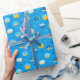 Add some holiday colour and sparkle with this fun Chanukah wrapping paper design. Appropriate for children or adults, corporate or family gift wrap needs. There are coordinating gift bags, tissue paper, and ribbon for a complete Chanukah look, or you can mix and match with our other Chanukah wrapping paper patterns. This design is in blue, white and gold featuring cupcakes, jelly doughnuts, and Jewish stars.