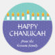 Light the menorah and share your joy on Chanukah. A holiday message crowned by a fully-lit Chanukah menorah prints against panels of purple and teal with a subtle circle pattern. Available in alternate colours with matching postage, photocards, cards and labels.
