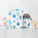 Add some holiday colour and sparkle with this fun Chanukah wrapping paper design. Appropriate for children or adults, corporate or family gift wrap needs. There are coordinating gift bags, tissue paper, and ribbon for a complete Chanukah look, or you can mix and match with our other Chanukah wrapping paper patterns. This design is in blue, white and gold featuring Chanukah presents with bows.