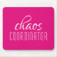 Chaos Coordinator Pink Typographic Text Mouse Pad features a simple design of the text "chaos coordinator" in a fun white script on a pink background. Perfect for that busy mum, teacher, sports team manager or work boss. Designed by ©Evco Studio www.zazzle.com/store/evcostudio