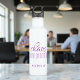Chaos Coordinator Purple Typography Personalised Water Bottle features a simple design of the text "chaos coordinator" in a fun purple calligraphy script with your personalised name below. Personalise by editing the text in the text box provided. Perfect for that busy mum, teacher, sports team manager or work boss