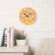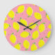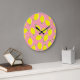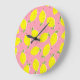 Chaotic Lemons Pink Polka: Citrus Pattern Large Clock