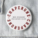 Official Class Chaperone Pin with custom text in middle. "Chaperone" in dark red; Custom text in black.