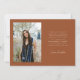 Modern and simple graduation announcement photo card featuring 5 photos on the front and 1 on the back. The hand written script text says "Chapter Complete." Add the graduate's name, information, and message to personalise this card. Terracotta colour.