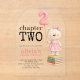 Chapter Two Teddy Bear Books Girl 2nd Birthday. Easily personalise the words as required. With a cute teddy bear holding a balloon and standing on a stack of books illustration.