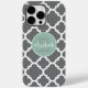 Charcoal and Mint Quatrefoil Pattern Monogram Case-Mate iPhone Case