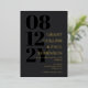 Elegant typography wedding invitation in charcoal grey with your wedding date in large black numbers down the side of the invitation. Add names and wedding wording in gold foil. Gold foil and dark grey wedding invitation with your names in a large font.