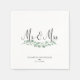 Charcoal Black Script Mr & Mrs Greenery Wedding Napkin