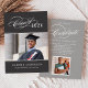 Celebrate your graduate with this elegant graduation party invitation featuring a flourished "Class of" calligraphy script with the year on a charcoal black background alongside a senior portrait framed by thin line accents. The grey back features a beautiful "Celebrate" script headline with a second photo spot and all your party details. Fully customisable text on both sides.
