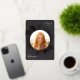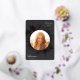 An elegant graduation announcement design featuring a photo of your graduate encircled by a floral border of rose gold foil lilies and foliage on a rich charcoal black background. Personalise with your graduate's name, school, and graduation year. Add a personal message to the back, along with an additional photo.