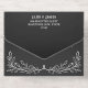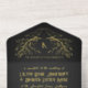 The perfect all in one invitation for your gothic wedding with invitation, RSVP, and envelope in one, as the invitation is easily folded into an envelope. All you need to do is customise the text, printed in gold foil, against a dark background suitable for Halloween weddings, goth weddings, and dark romance weddings with a raven couple at the top perched on gold foil branches of greenery curving down in a heart-shape around your soon to be shared initial.