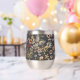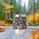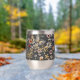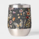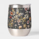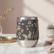 This custom stainless steel wine tumbler features a serene and natural aesthetic, perfect for those who appreciate delicate botanical details while enjoying their favorite beverage. The wrap-around design displays an enchanting pattern of hand-painted watercolor wildflowers and butterflies set against a dark, charcoal-inspired background. This rich backdrop creates a sophisticated contrast that highlights the intricate details of the warm terracotta and soft pink blooms.