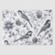 This tissue paper is adorned with a charming French-inspired toile design, showcasing magnificent birds in hues of charcoal grey amidst foliage in grey and black.