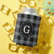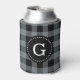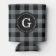 Charcoal Grey Blk Buffalo Check Plaid 1I Monogram Can Cooler