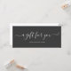 Simple and elegant minimalist grey and white gift certificate. This elegant script gift certificate fits perfectly within a standard #10 business envelope. Perfect for your brand and business.