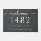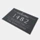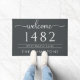 Charming and classic custom doormat features "welcome" in elegant script paired with your family’s last name, address and house number. Designed with clean stripe accents, this doormat offers a timeless look that can be personalised to match your entryway.