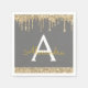 Luxury Gold and Charcoal Grey (Grey), White Faux Glitter and Sparkle Elegant Monogram Birthday Party Napkins. This Birthday Party, Bridal Shower, Wedding, Baby Shower Napkin can be customised to include your initial and first name.