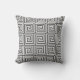 Decorative pillow with a Charcoal Grey Greek Key pattern. Handmade in the USA. 20 inch cotton pillow with a geometric design.