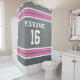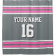 Charcoal Grey Hot Pink White Stripes Sports Jersey Shower Curtain