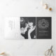 Charcoal grey monogram leaves wedding all-in-one Tri-Fold invitation