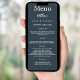 Birthday party menu card. Personalise and add a name, age, date and the menu. A charcoal grey background. White coloured letters.