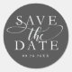 When you're announcing your engagement and sending save the dates, complete the suite with this elegant envelope seal featuring a beautiful and timeless save the date type treatment along with custom text that can include the date, your names or both. The sticker designed to coordinate with the Lea Delaveris Design Elegant Save the Date collection but can work well with other save the date designs too. The type is white and a very light grey and the background by default is dark charcoal grey. That background colour can be adjusted by clicking "customise."