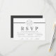 Charcoal grey stripe and initials formal wedding RSVP card. It showcases a grey stripe with a circle with your initials and two little hearts and your text.