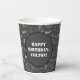 Add a fun custom touch to western and cowboy themed birthday parties with these paper cups which have a bandanna style paisley pattern in black and white against a charcoal grey background. They're ready to be personalised with your own message in bold black lettering.