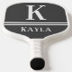 Charcoal Grey & White Striped Monogram Name Pickleball Paddle