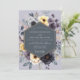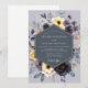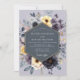This elegant design features a stunning arrangement of moody, dark charcoal and deep amethyst anemones. Bright pops of buttery yellow blossoms and soft cream flowers provide a beautiful contrast. The entire bouquet is set against a pale lavender-grey backdrop, surrounded by dusty green foliage for a romantic, artistic feel.