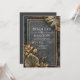 Invite your guests to a night of stunning opulence with this charcoal marble gold metallic tropical leaf invitation. This sophisticated design is dominated by a dramatic dark grey marble texture, beautifully cracked and veined with shimmering metallic gold accents that instantly convey luxury. The central text area is defined by a clean, double line gold geometric border. The bottom and top corners are richly decorated with bold tropical foliage, including an oversized fan palm and stylised leaves, all rendered in a dazzling metallic gold and bronze texture. This is the perfect stationery for a glamourous black tie, modern tropical, or VIP lounge style event. You can effortlessly use this gorgeous invitation to share your ceremony details, to include reception information, to provide directions to your venue, or to define your elegant dress code. The versatile design is also suitable for a high-end corporate gala, a luxury New Year’s Eve party, a stylish milestone birthday, or a sophisticated boutique brand announcement.