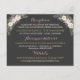 Present your reception, accommodations, and wedding website information on this elegant details card featuring corner floral arrangements of rose pink peonies and sage greenery on a rich charcoal background. Pink calligraphy headers and cream text create a beautifully organised layout against the dark backdrop. All text is fully customisable. Designed to coordinate with the matching charcoal floral suite.