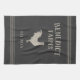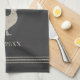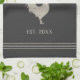 Celebrate life on the farm with this cute personalised kitchen towel featuring your family name or farm name and year established in soft tan lettering accented with a chicken illustration on a charcoal grey background. Rope stripe detailing across the top and bottom completes this rustic farmhouse style design.