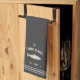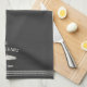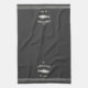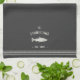 Customise your kitchen with this cute personalised towel featuring your family name or house name and year established in soft ivory lettering accented with a fish illustration on a charcoal grey background.