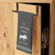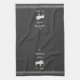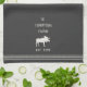 Customise your kitchen with this cute personalised towel featuring your family name or house name and year established in soft ivory lettering accented with a moose illustration on a charcoal grey background.