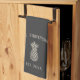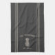 Customise your kitchen with this cute personalised kitchen towel featuring your family name and year established in soft tan lettering accented with a pineapple illustration on a charcoal grey background.