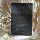 This sophisticated wedding invitation features a deep charcoal background adorned with intricate floral patterns in soft slate tones, creating a refined and timeless look. The front of the invitation showcases a beautifully detailed floral motif across the top, paired with elegant typography that gracefully presents the wedding details. The back continues the floral theme, providing a seamless and harmonious design throughout. Perfect for couples seeking a modern yet classic aesthetic, this invitation's dark and muted colour palette adds a touch of understated luxury, making it an ideal choice for evening or formal weddings.