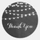 Chic modern summer wedding favour thank you label design with simple elegant glowing string lights hanging across the top and a classy mix of modern and calligraphy script fonts on a printed faux watercolor texture background. A simple and stylish preppy design, perfect for summer! Click the CUSTOMIZE IT button to customise fonts, move text around and create your own unique one-of-a-kind invitation design.