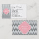 Charcoal Thin Chevron Pink Quatrefoil 3 Monogram Business Card