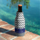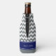Charcoal Wht Chevron CB Navy Name Monogram Wedding Bottle Cooler