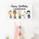 Celebrate in style with this Peanuts-themed birthday banner featuring Charlie Brown and the gang. Personalise it with the birthday child’s name to create a festive and memorable atmosphere. Perfect for fans of the beloved Peanuts characters, this banner adds charm and fun to any birthday celebration.